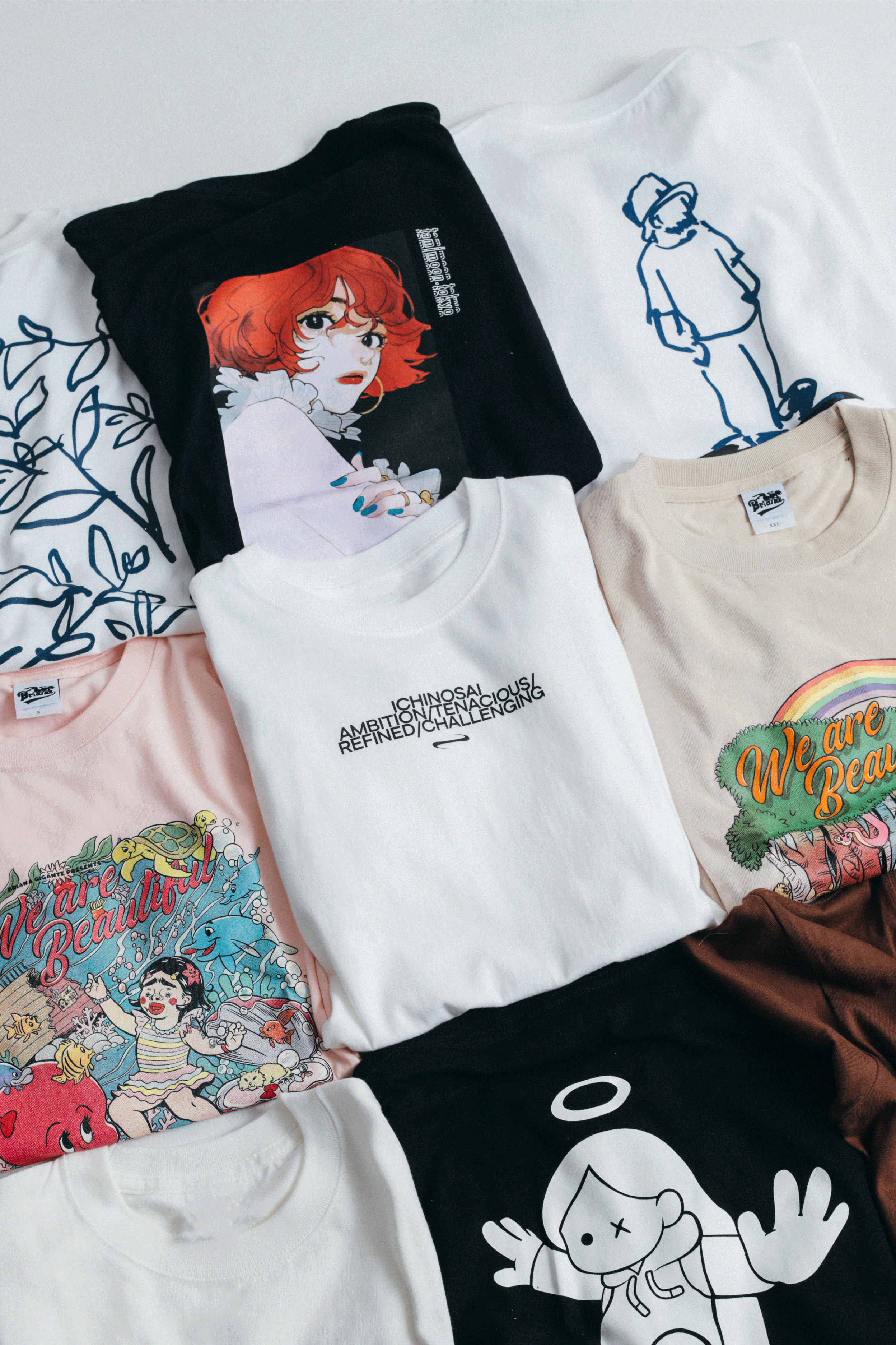 ichinosai は、秋田県の伝統的なプリント工場から始まり、東京に拠点を置くクリエイティブクラフトスタジオです。マンガ、プロスポーツ、インフルエンサーといった様々な分野のクリエイターと共に、個性を活かしたアパレル製品の企画・デザイン・製造・EC販売を一貫して行っています。